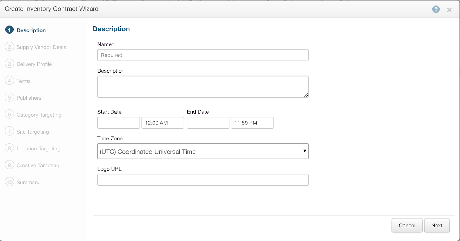- Fill in the “Name”, “Start Date”, “End Date”, and “Logo URL” and click “Next.”