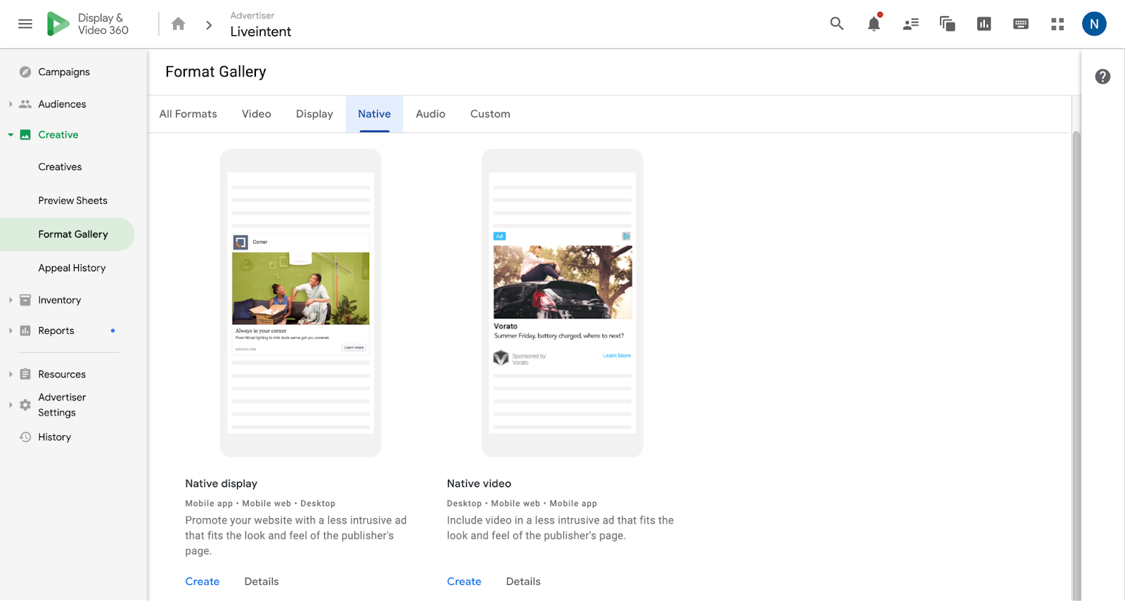 *Please note: creatives will be resized with a transparent background to meet DV360 requirements for Native Display, but will render as Display.